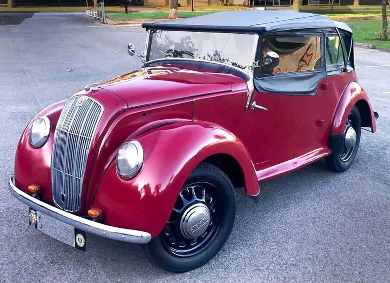 Aviation had a significant influence on design, with aerodynamic streamlined curves met by innovation under the skin, with hydraulic brakes and refined suspension improving driving dynamics and safety.